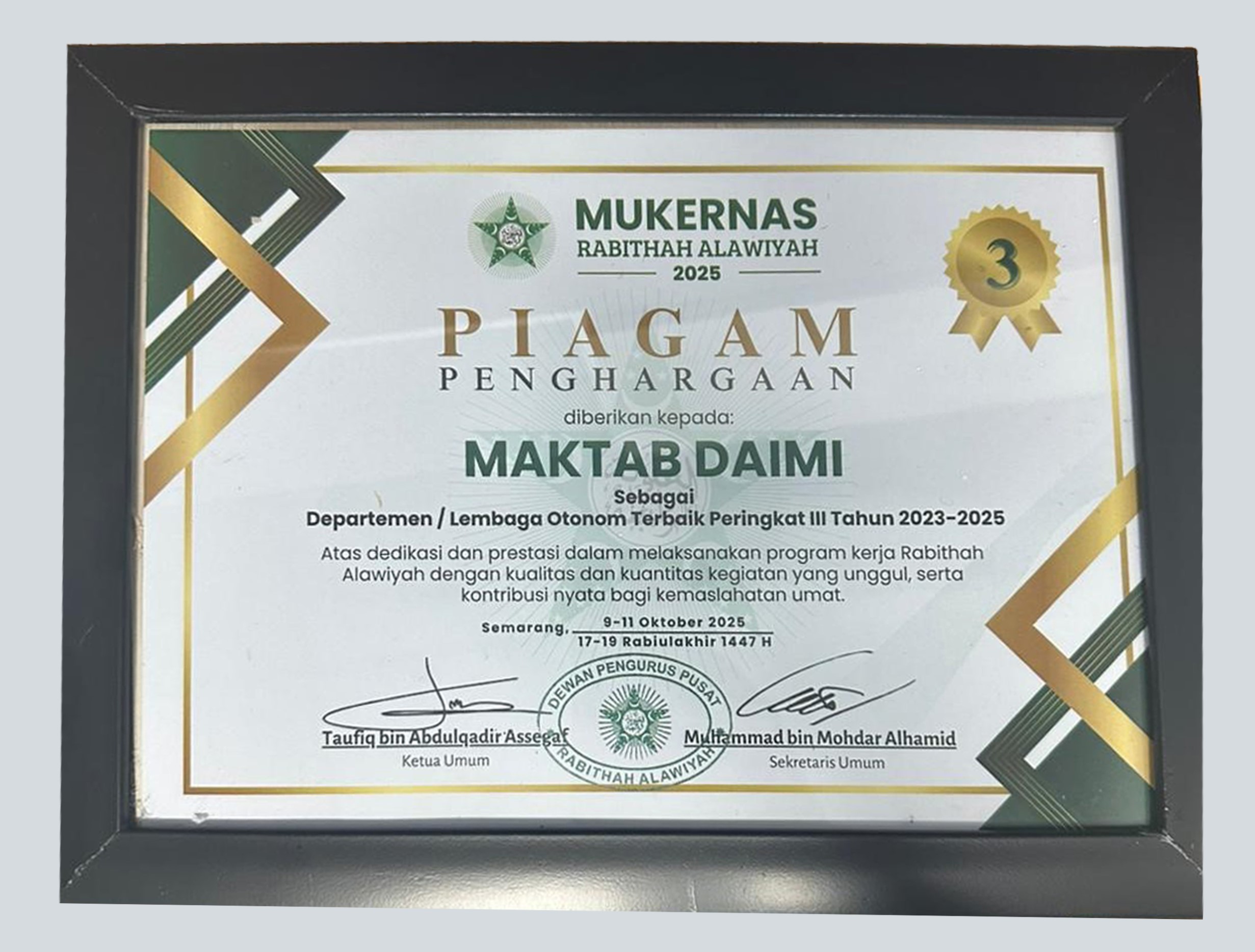Lembaga Otonom Terbaik III dalam Mukernas Rabithah Alawiyah 2025